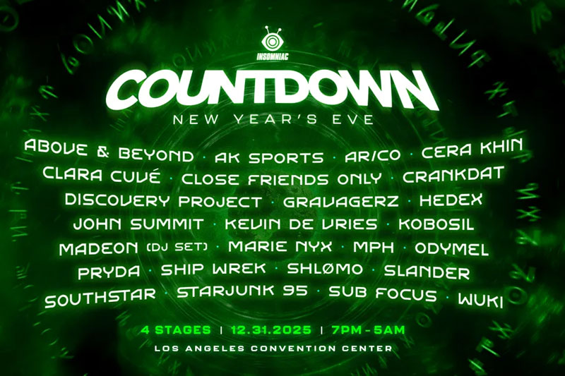 Category: Events Description Description Countdown NYE! The Insomniac event ticks down the last hours of the year at the Los Angeles Convention Center in southern California with this massive EDM festival. The alien themed experience features stages like The Mothership, The Nebula, Area 51, and Twilight Zone along with warnings of an alien attack at… Continue reading Countdown NYE 2025